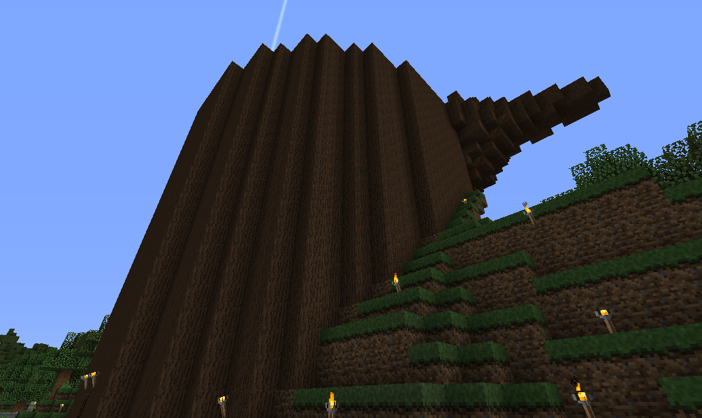 Juste pour montrer l'avancement du projet. Je pense que je vais commencer à attaquer les branches pour ne pas me retrouver coincé par le plafond à 256 blocs d'altitude. Pour l'instant j'en suis à peu près à 120 :