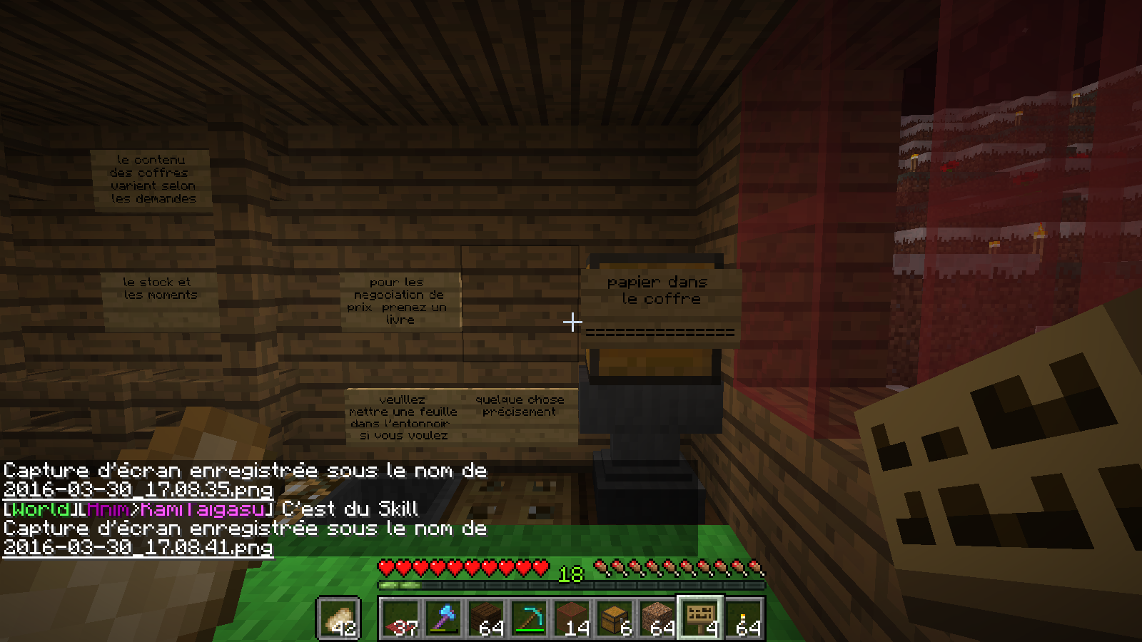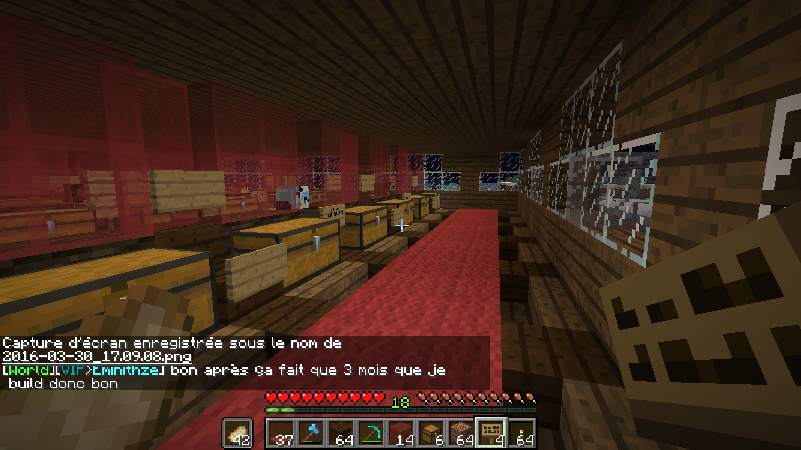 Le 2eme étage est fini ou il y aura la section table de craft,table denchantement,enclume,four alambic... (l'accès y sera payany en achetant une carte de membre) (pas cher la carte)