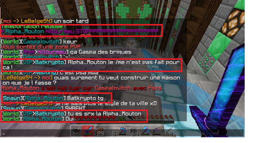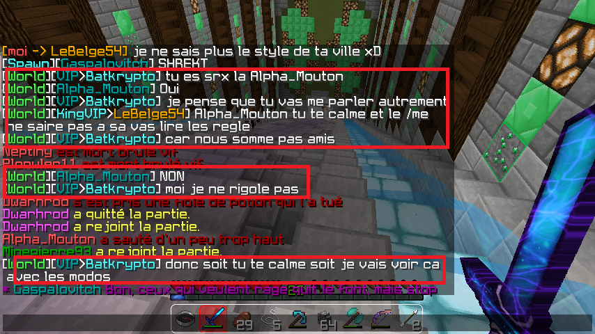 Preuves (préférablement screens) :Je me connecte sur le serveur et je vois qu'il y a du PVP, je fait donc comme si de rien était jusqu'au moment ou Alpha_Mouton utilise le /me alors que /me n'est pas fait pour ça :