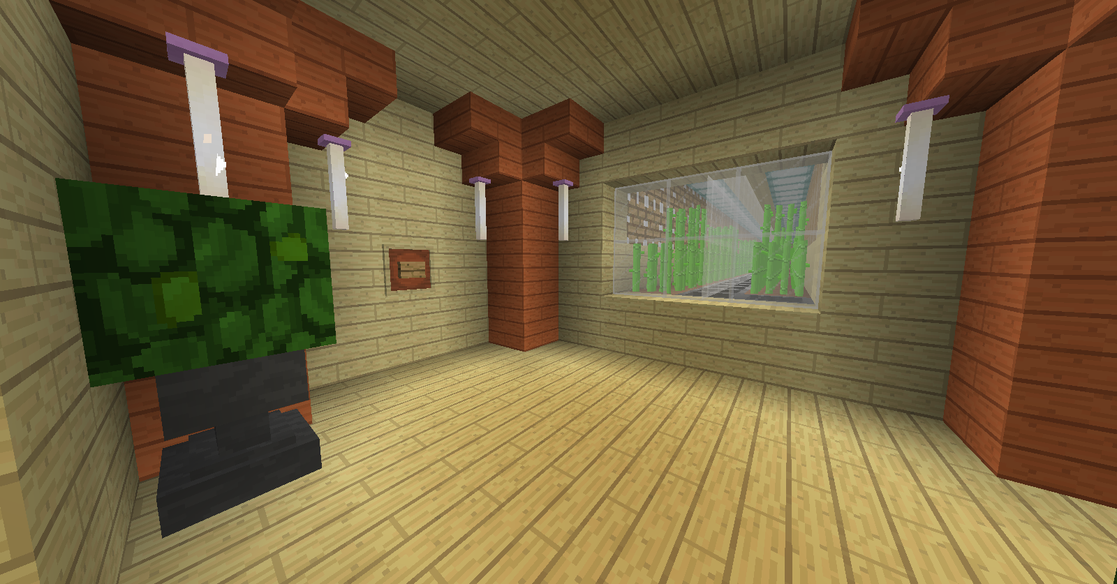 Présentation de celle-ci (screen, textes, etc...) : L'utilitaire en question est composé de deux serres de part et d'autre. Relié par deux double-coffres au milieu, il permettra de répondre aux besoins des joueurs. La ferme est entièrement automatique à l'aide des capteurs solaires et peut aussi se déclencher manuellement à l'aide des boutons sur les côtés.
