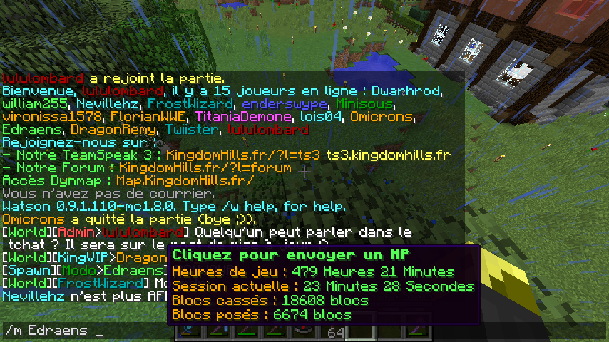 Il permet donc de demander une TP en cliquant sur le nom du monde (VIP) ou d'envoyer un MP en cliquant sur le pseudo ![]()