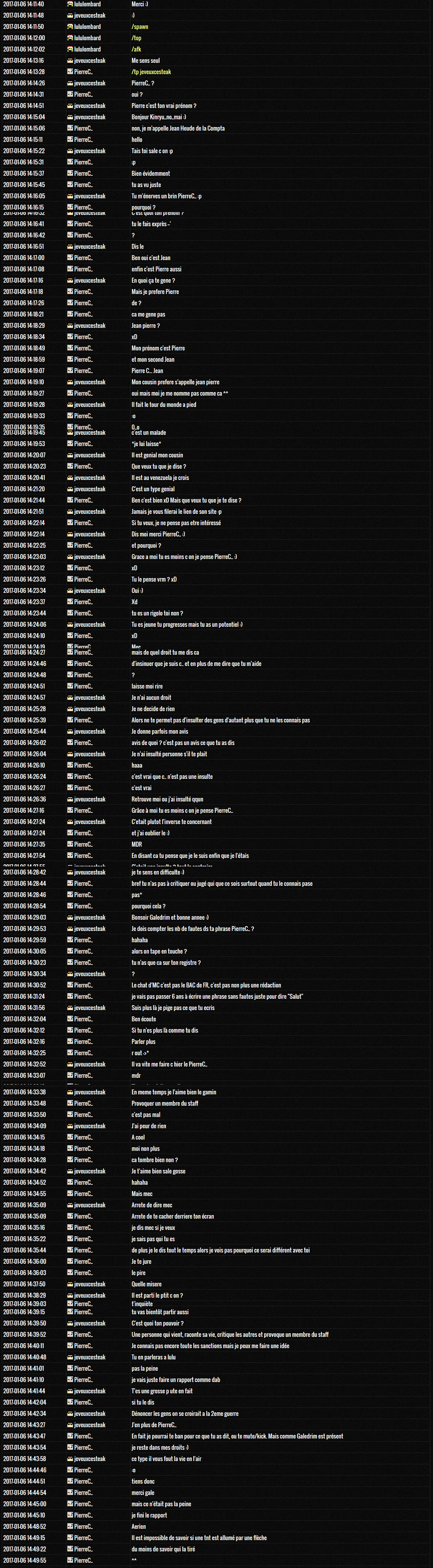 2016-11-05 18:07:51 lululombard MonsterLava72 tu sais que j'ai envie de ban parce que t'es lourd ?