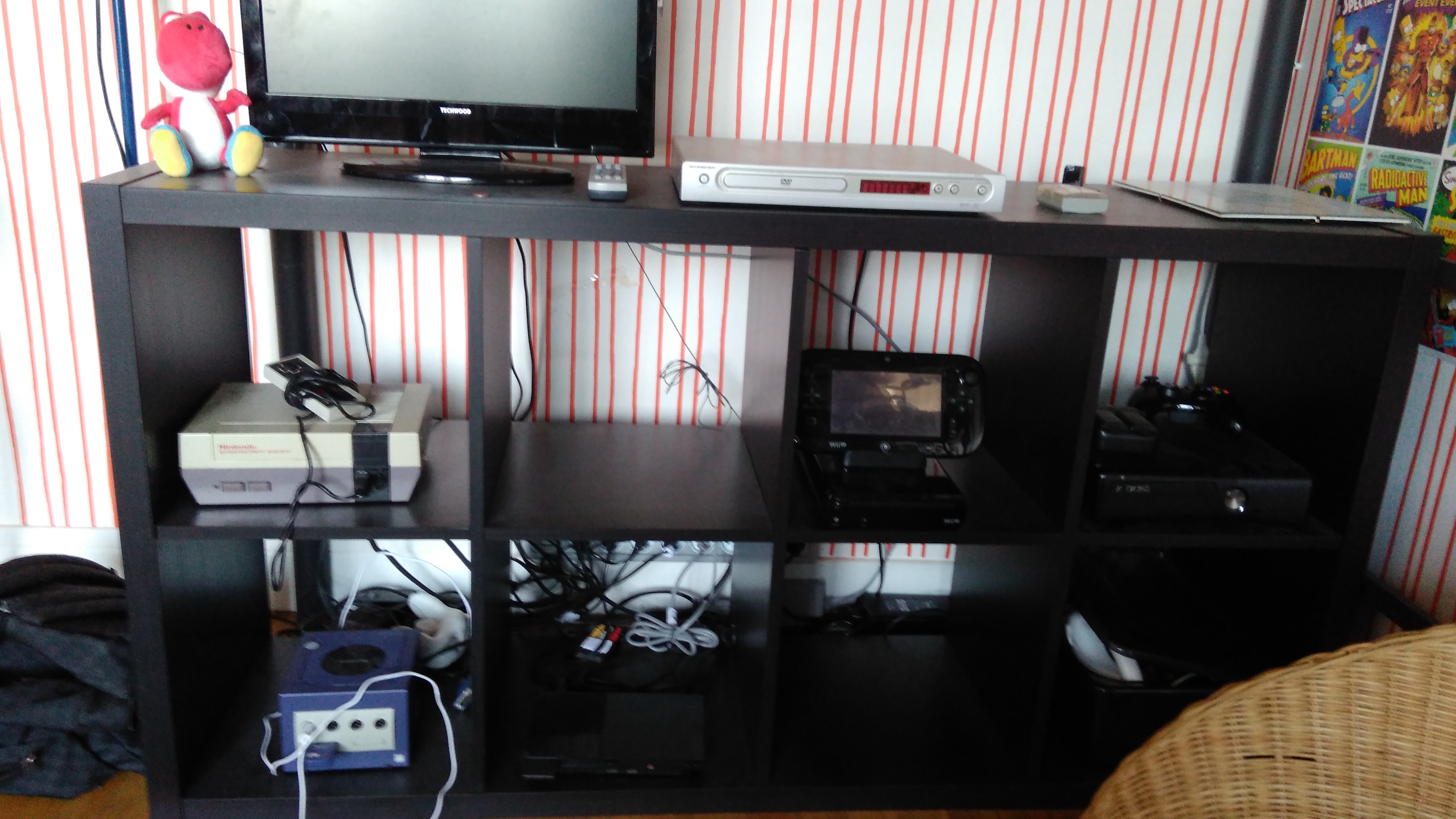 Bon, j'ai un peu de temps, présentation de mon p'tit coin. J'ai encore quelques consoles, mais j'ai pas le courage de les déballer et les réinstaller.