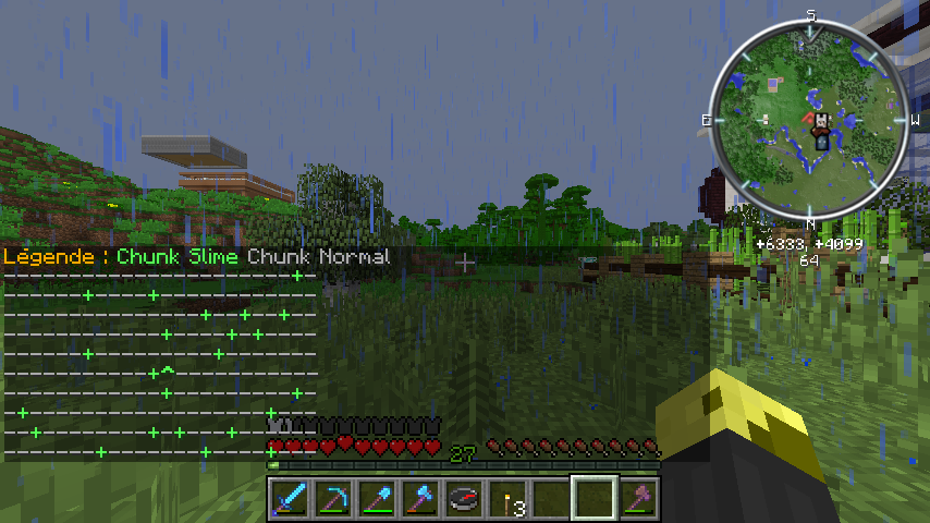 Une grille de 24*10 s'affiche en mettant en vert les chunks à slime, et en gris les chunks normaux.